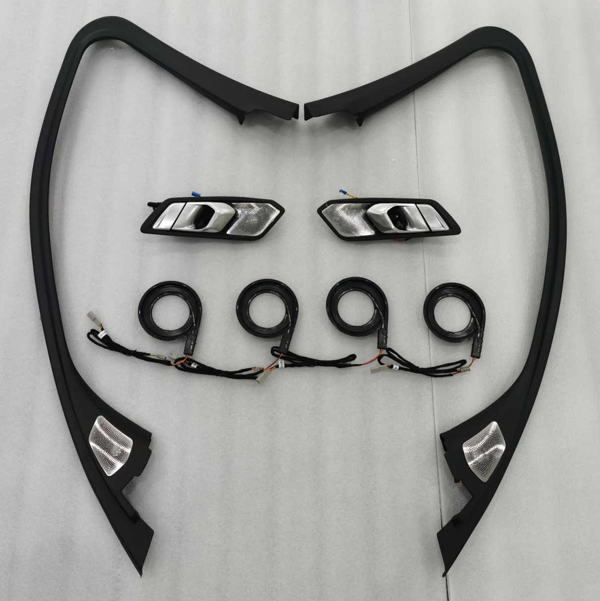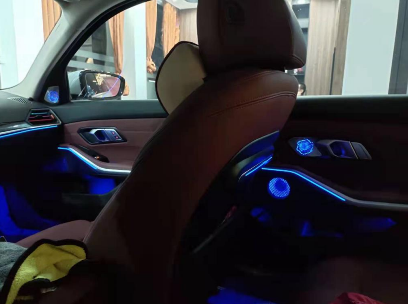 Комплект из 8 предметов для BMW 3 серии BW. Подходит для моделей автомобилей: G28/G20. В комплект входят: 1 пара светящихся высокочастотных динамиков для передней стойки, 1 пара ручек с подсветкой для задней двери, четыре дверных проема (для оригинального автомобиля с HM). Функция: синхронизация оригинальной подсветки салона автомобиля и синхронное изменение цвета.